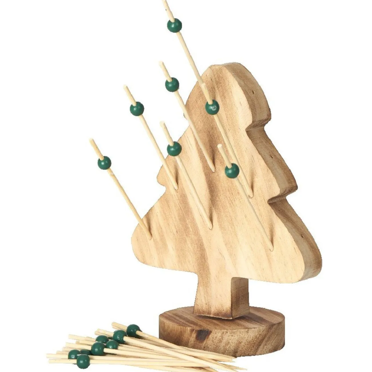 Set apéritif en forme de sapin et pics à boule verteen bois, dim. 15x16x2 cm.