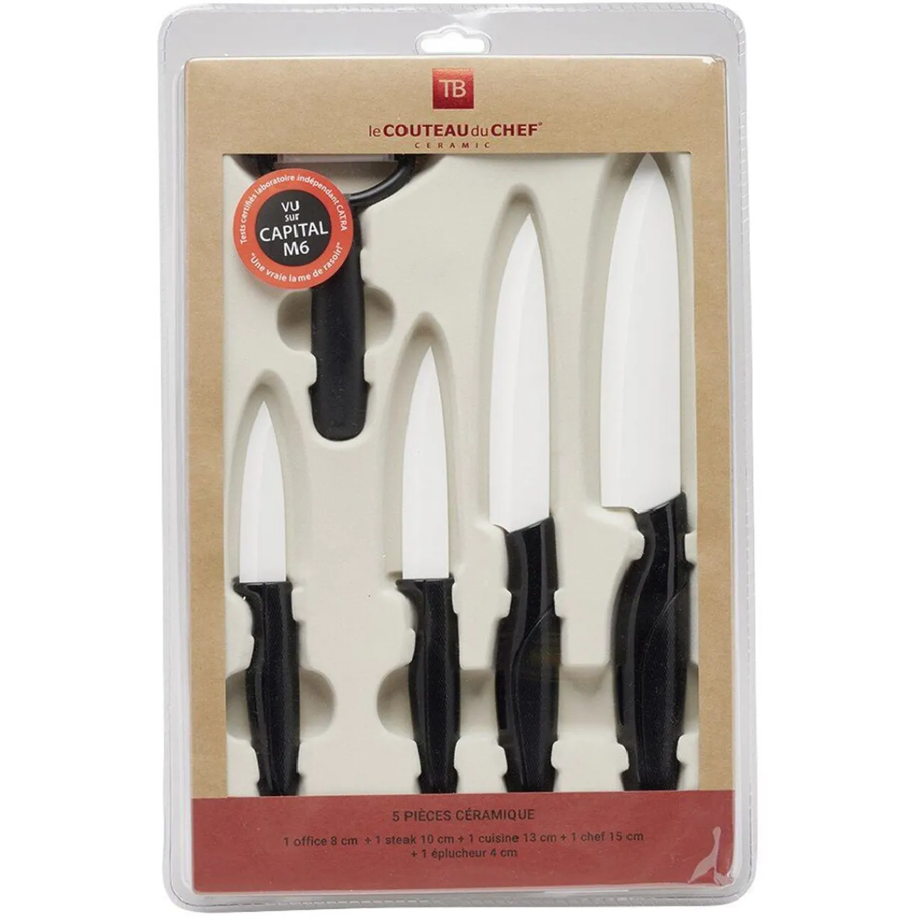 Gifi Set céramique couteau x4 avec économe x1 blanc et noir