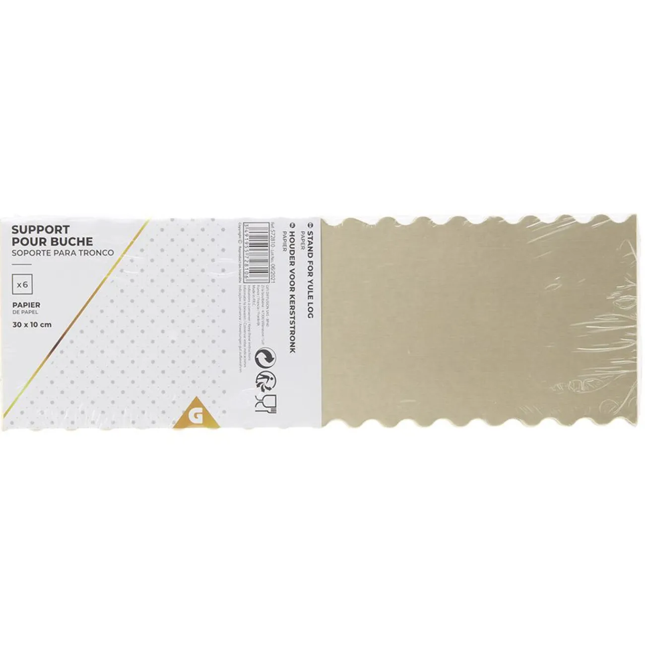 Lot de 6 supports pour bûche de Noël en papier doré.