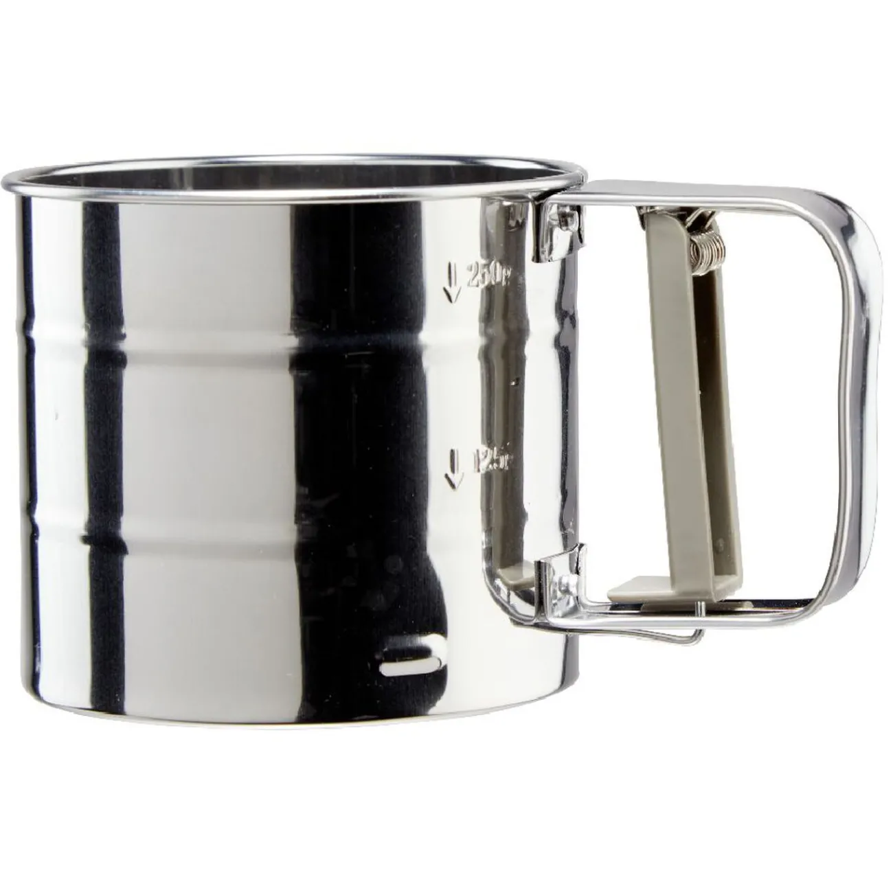 Tamiseur à farine en inox. Parfait également pour saupoudrer vos crêpes et autres gourmandises de sucre, sucre glace…