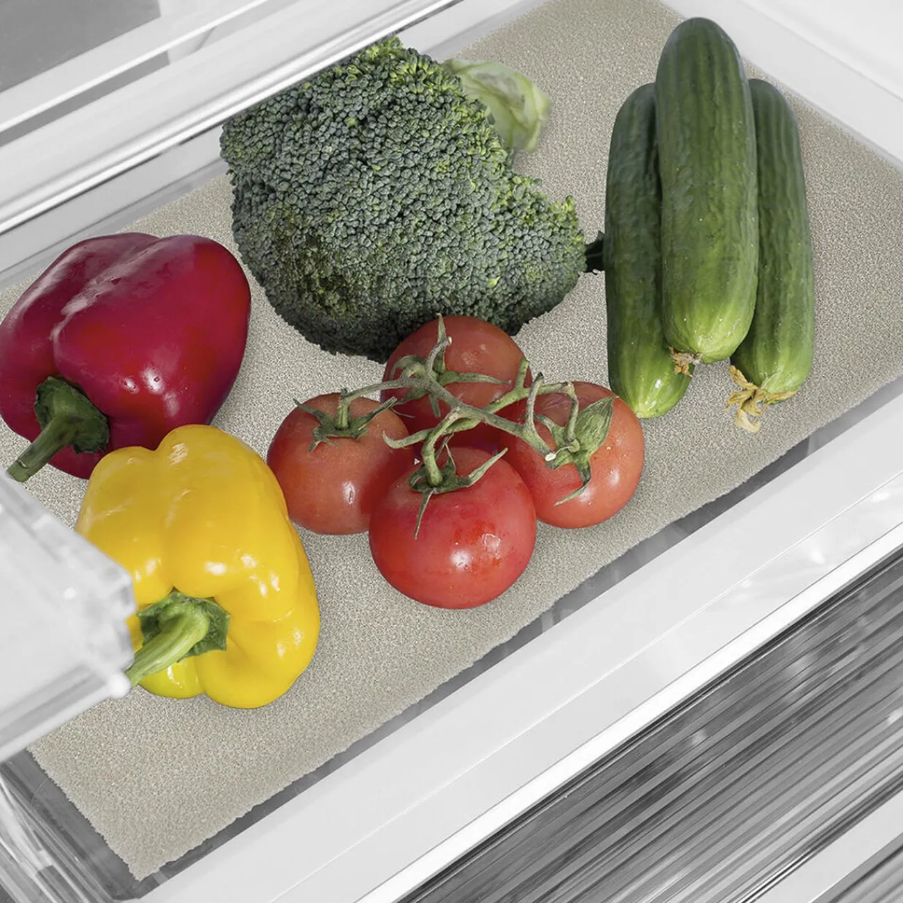 Grâce au tapis fraîcheur spécial frigo, conservez vos fruits et légumes frais plus longtemps! Ce tapis éponge à placer dans le bac à légumes ou sur les étages absorbera l’humidité ambiante et préservera les qualités gustatives de vos aliments plus longtemps.