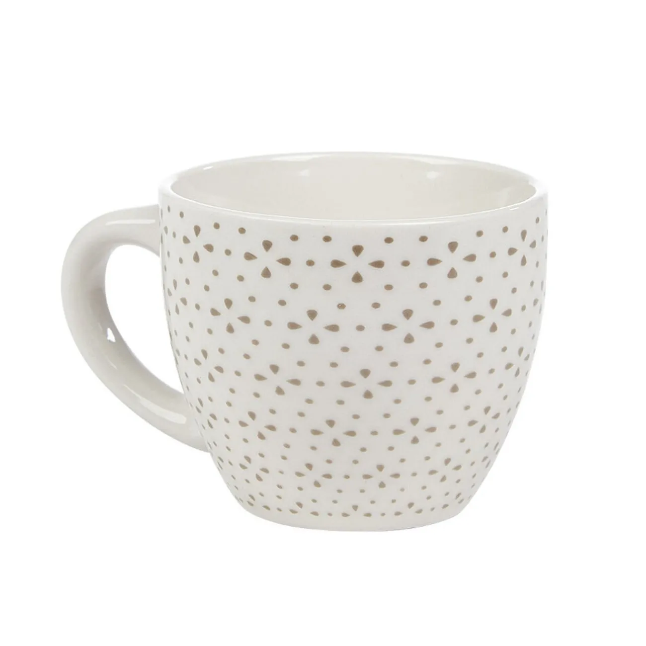 Dégustez votre café préféré dans cette jolie petite tasse à expresso en porcelaine blanche et ses petits motifs décoratifs en forme de fleur de couleur taupe.