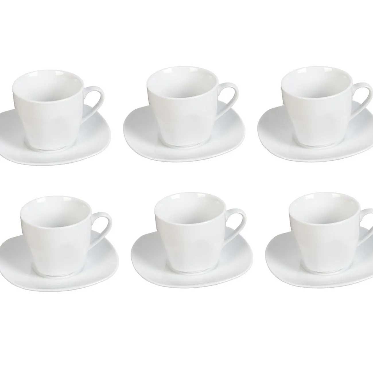 Set de 6 tasses et 6 sous-tasses blanches en porcelaine.