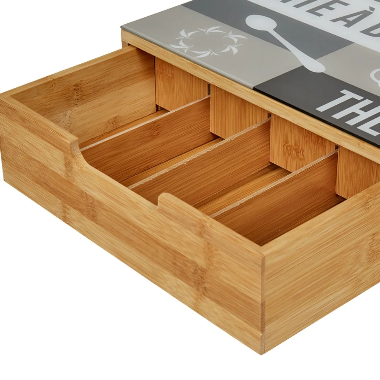 Tiroir toutes dosettes de couleur gris, blanc et naturel.