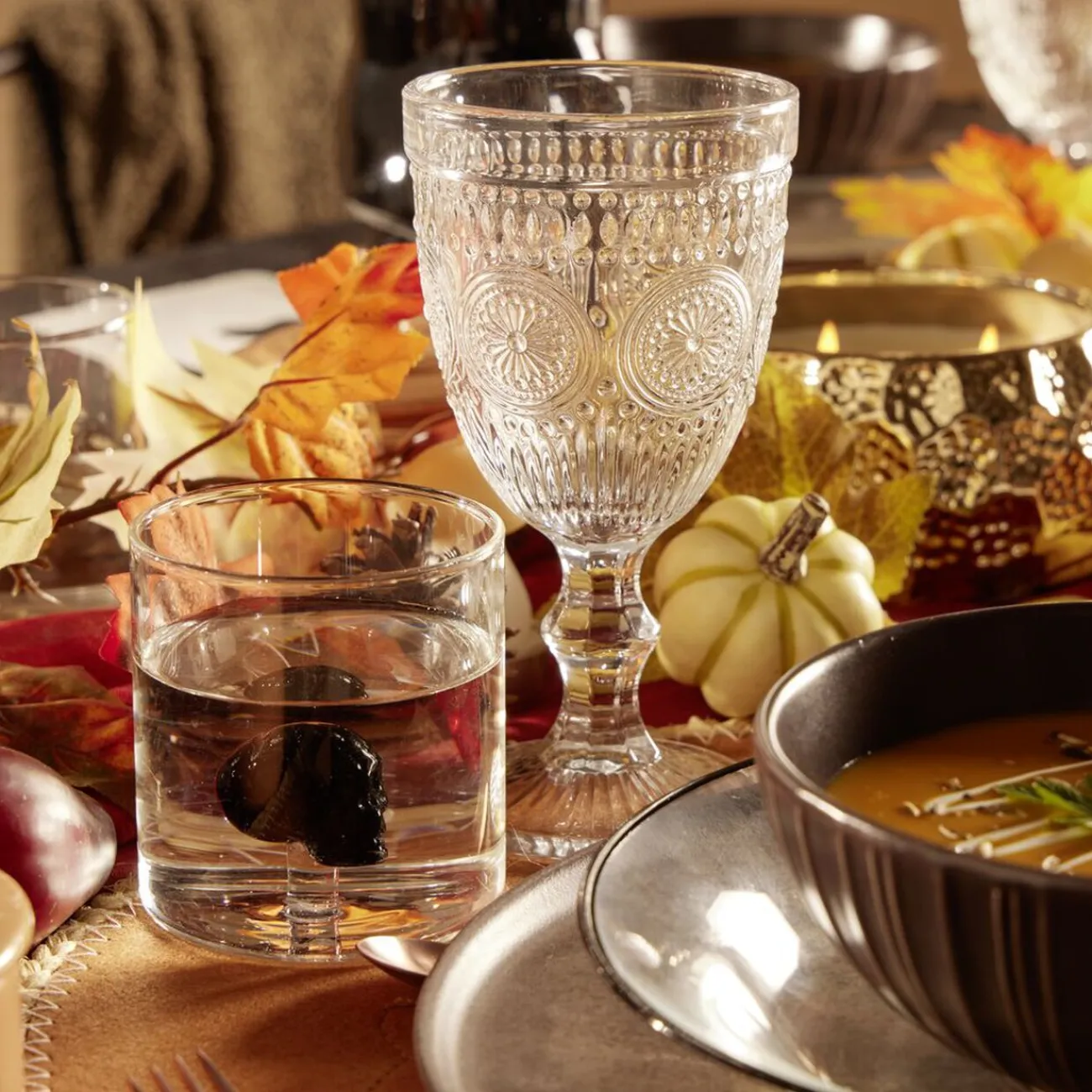 Découvrez le verre à pied en verre avec motif baroque, idéal pour apporter une touche d’élégance à vos réceptions.