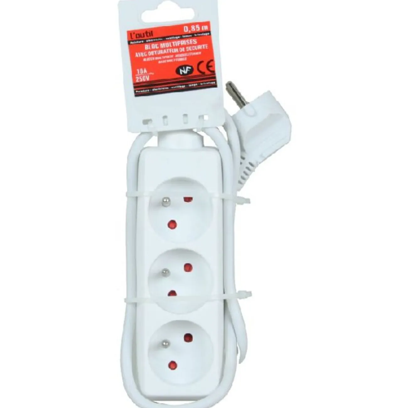 Bloc multiprise avec obturateur de sécurité de 85 cm de longueur.