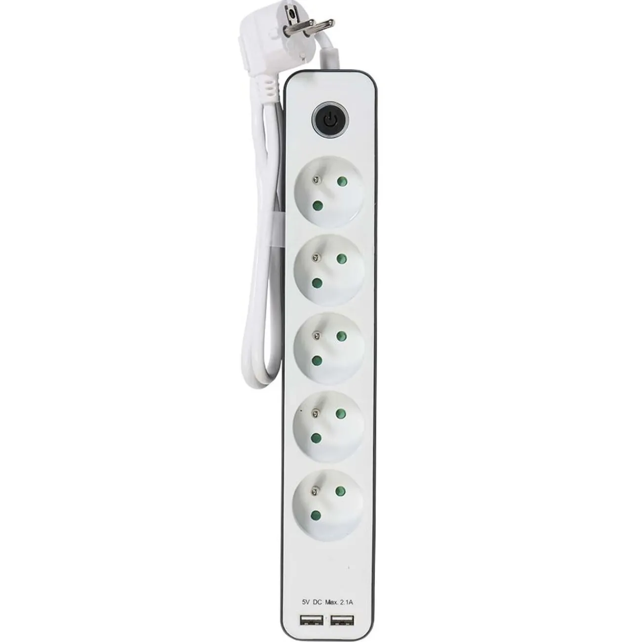 Ce bloc multiprise vous offre 5 prises standards et 2 prises USB 5V/2,1A.