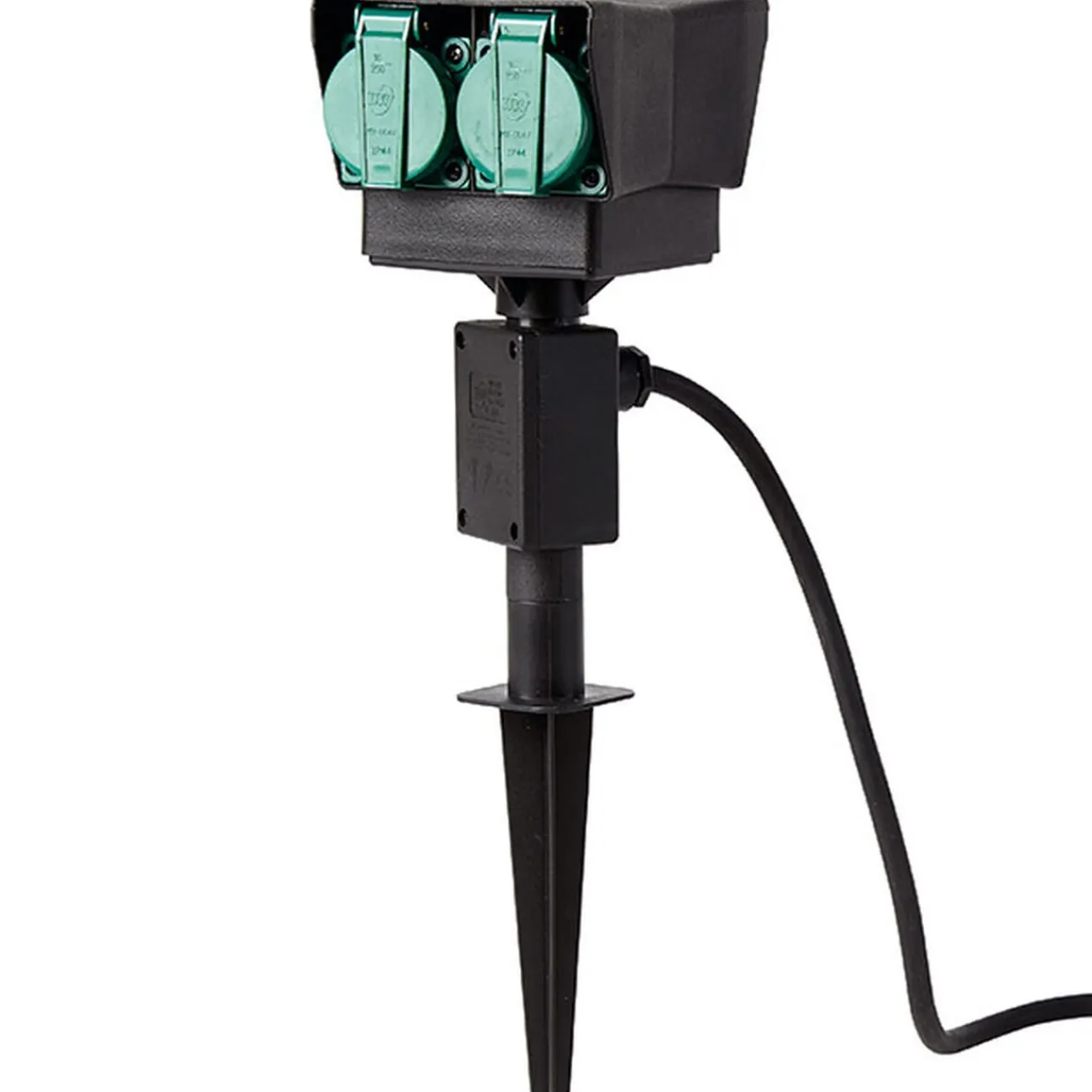 Pic de 4 prises de courant électrique à planter, dim. 20xh40x7,8 cm, plastique. L. câble 1,5 m..