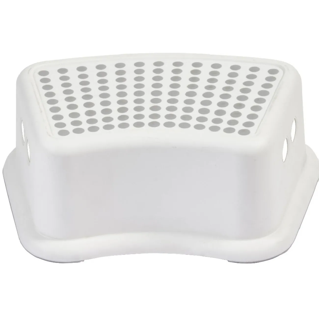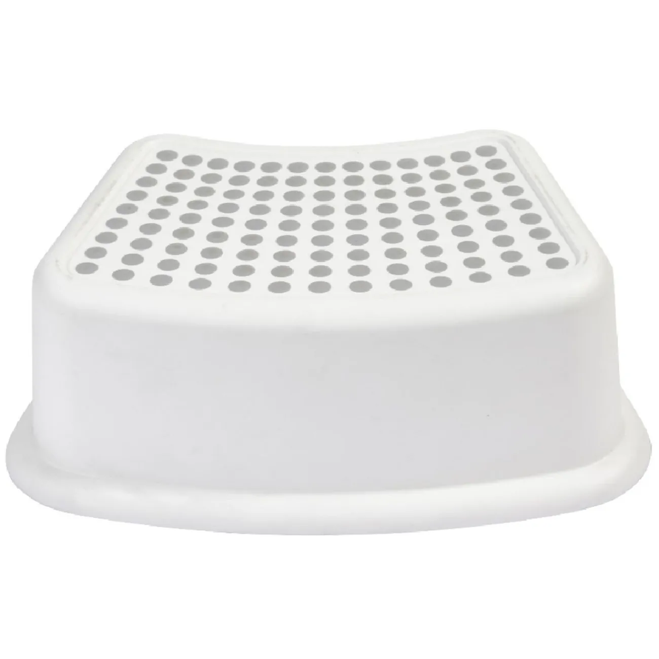 Marche pied blanc avec surface d’appui antidérapante grise.
