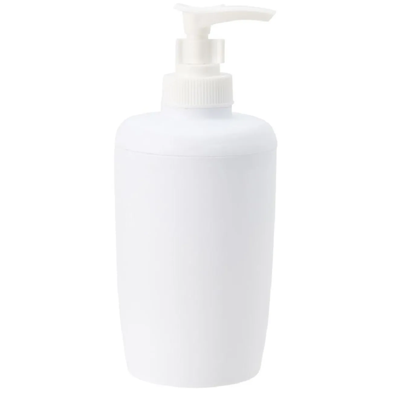 Distributeur à savon en plastique uni blanc pour la salle de bain. Son design sobre et élégant s’adaptera parfaitement à tous les styles de décoration.