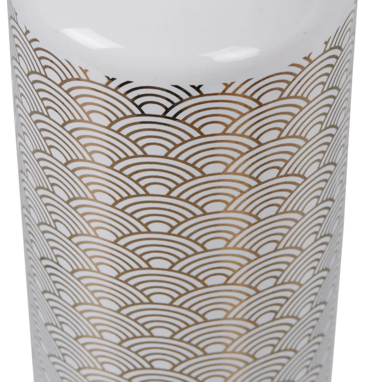 Ce distributeur de savon en céramique à motif écaille blanc et doré sublimera la décoration de votre salle de bain.
