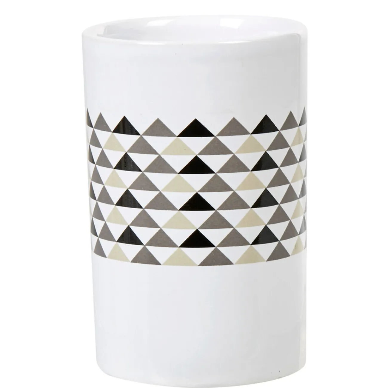 Gobelet de salle de bain blanc à motifs triangles, en céramique.