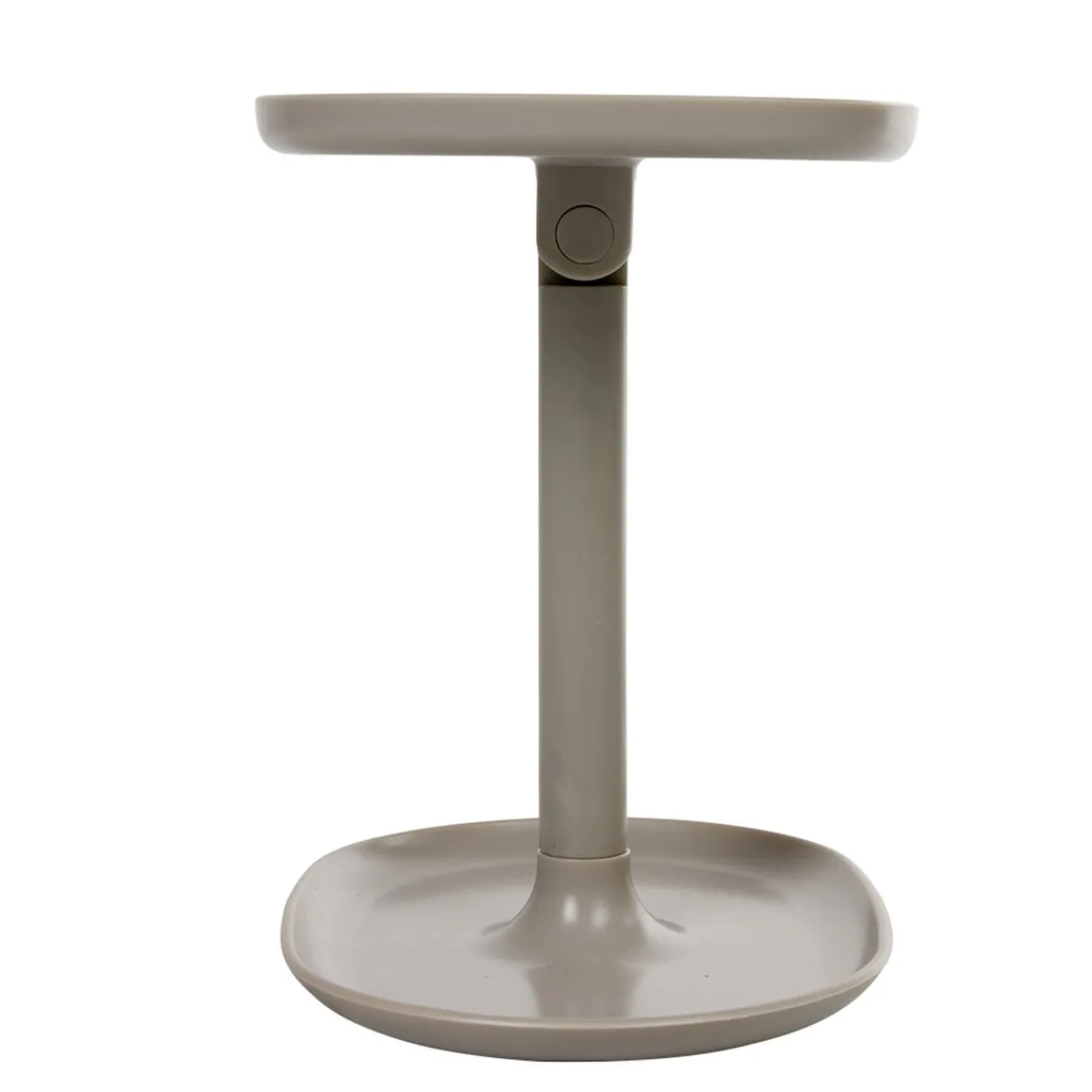 Miroir POP inclinable de couleur gris taupe sur pieds pouvant faire office de repose bijoux ou accessoires.