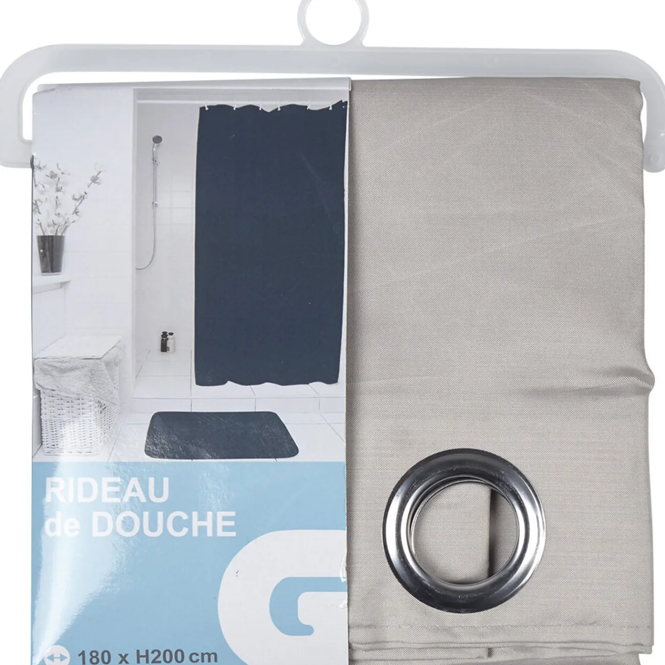 Rideau de douche gris clair à oeillets, dim. 180×200 cm, polyester et polyuréthane.