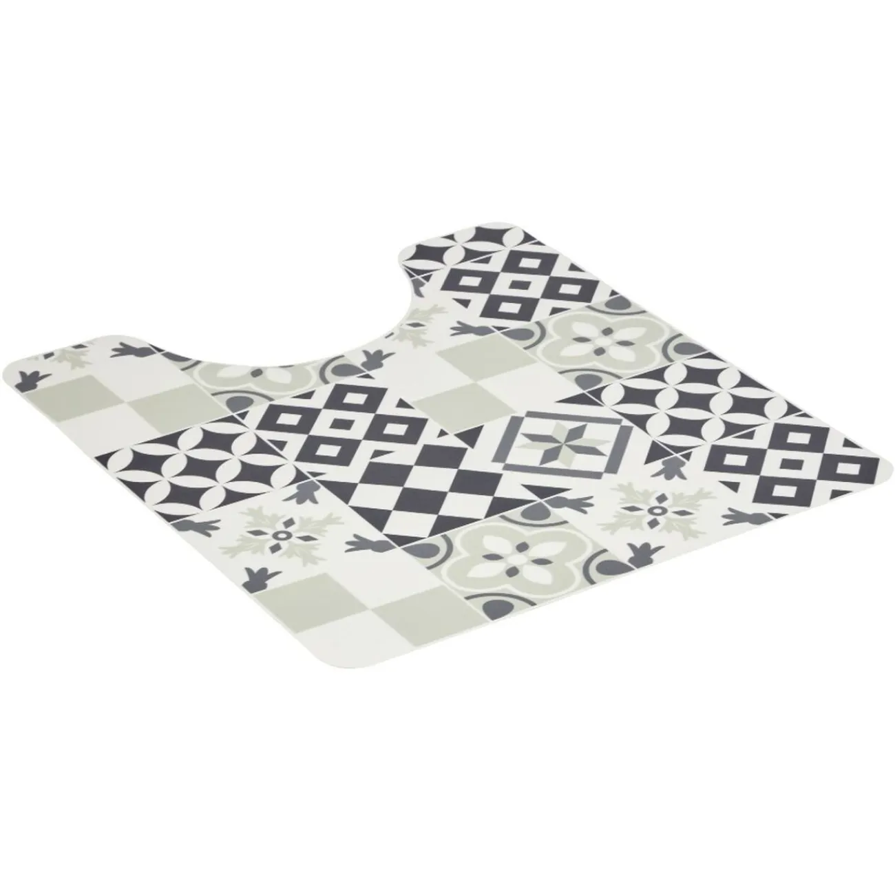Habillez le contour de vos toilettes à l’aide de ce tapis motifs carreaux de ciment.
