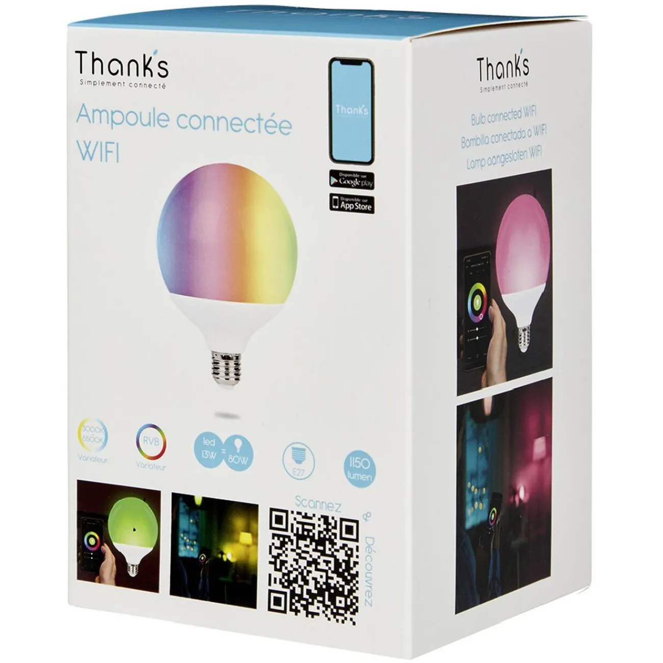 L’ampoule LED connectée à votre téléphone via WIFI vous permet de changer la couleur d’ambiance de votre pièce en 1 clic. Amusante et simple d’installation grâce à l’application Thank’s compatible Apple et Android, elle offre un choix de 8 modes lumineux préprogrammés et modifiablesainsi qu’une minuterie réglable pour chaque activité et chaque moment de la journée!