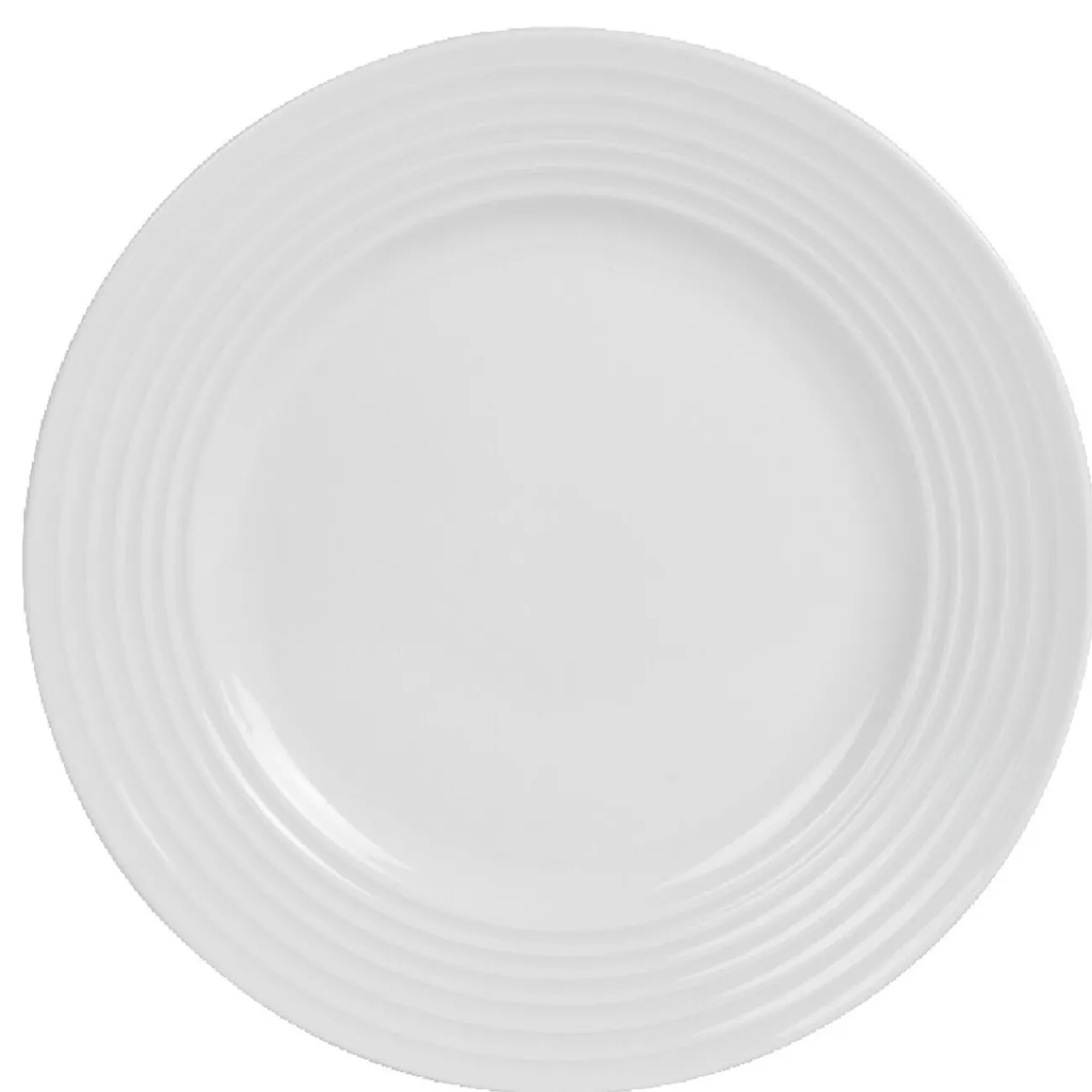 Une assiette à dessert qui se veut discrète mais avec une touche d’originalité : ses rainures en bordure cerclant le centre.