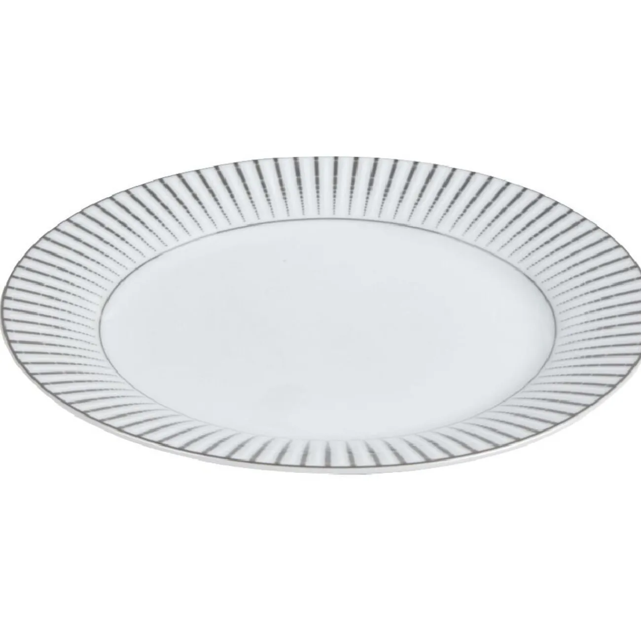 Assiette à dessert en porcelaine à motifs argentés, pour apporter une touche d’éclat à votre table. Complétez votre service en retrouvant l’assiette creuse assortie, référence 369058, l’assiette plate, référence 369056, ainsi que le saladier, référence 369054, selon disponibilité en magasin.