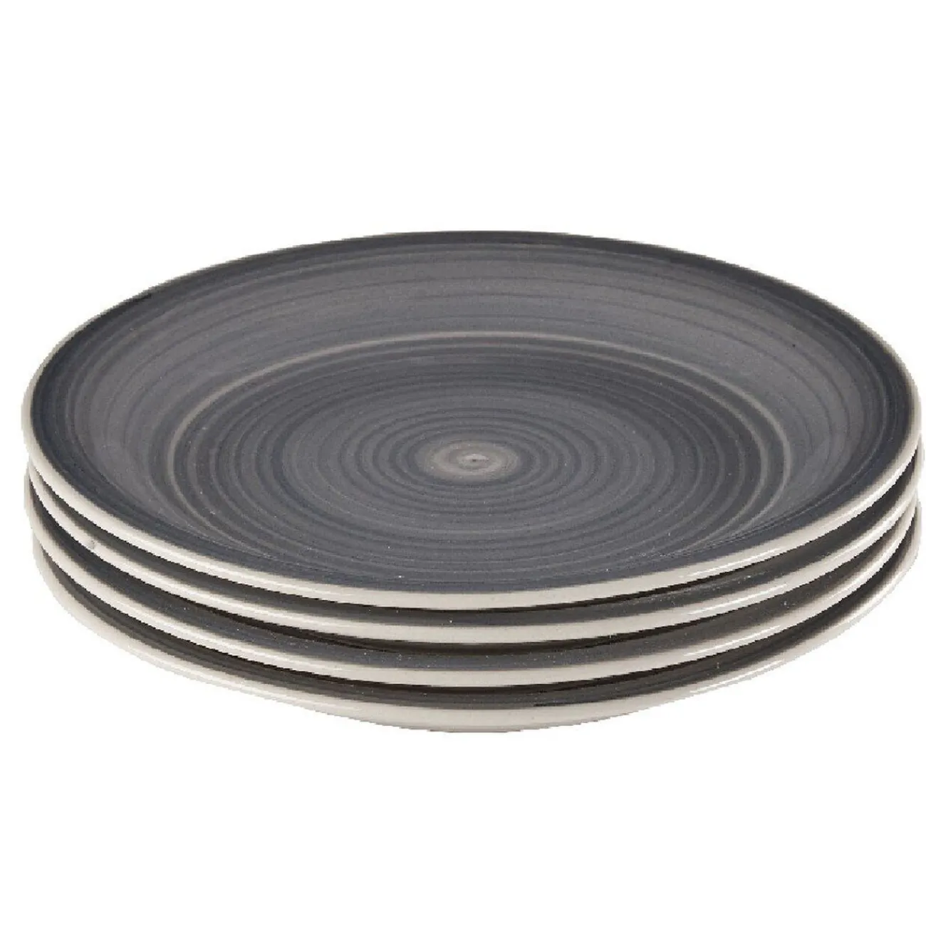 4 assiettes à dessert de couleur gris effet spirales.