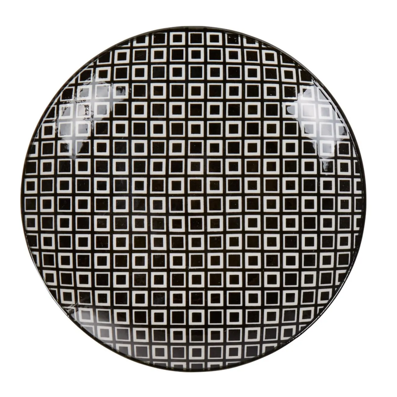 On adore le design géométrique de cette assiette à dessert Etna blanche ornée de losanges noirs.