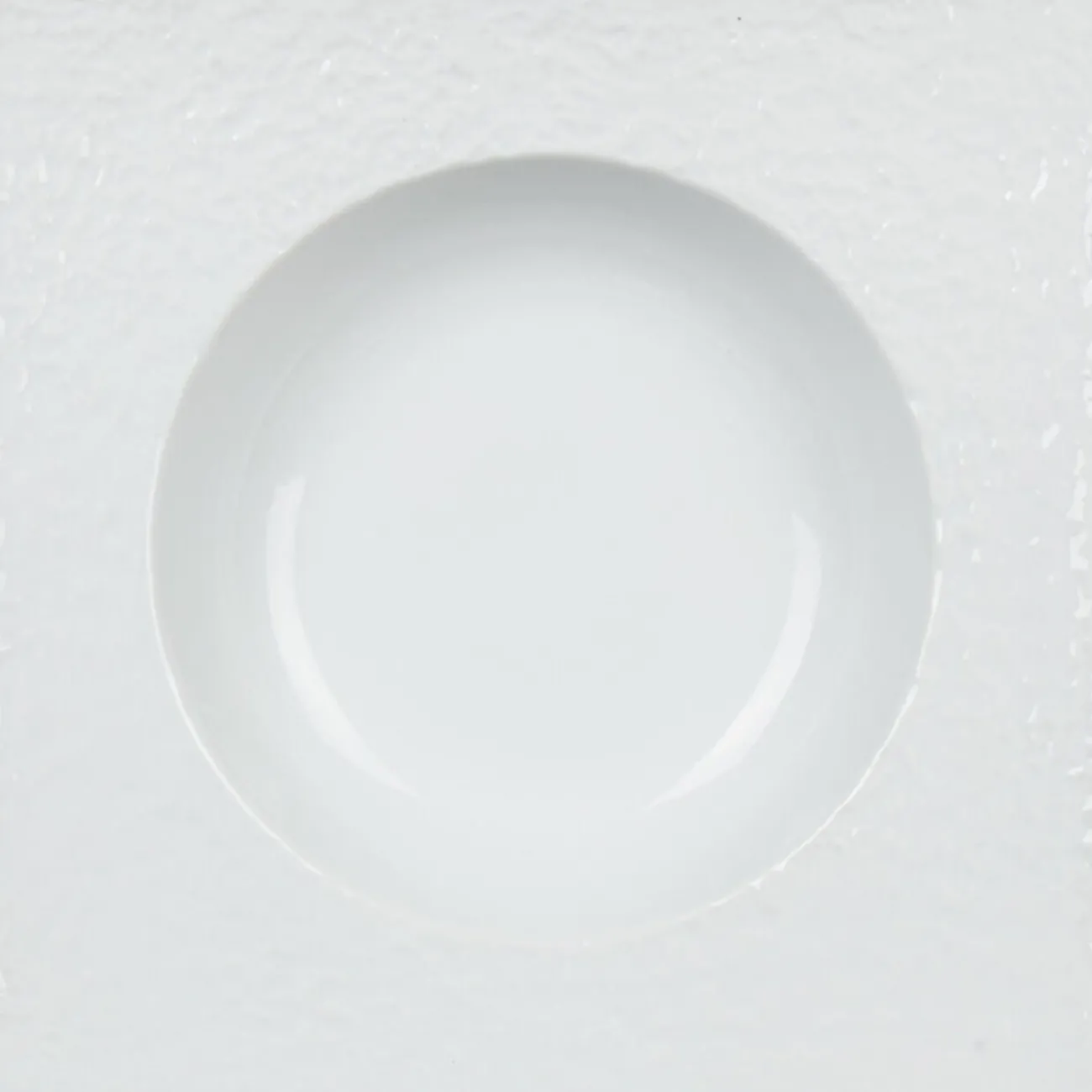 Assiette creuse blanche carrée avec intérieur rond, dim. 21,5×21,5xh.3,5 cm, porcelaine.