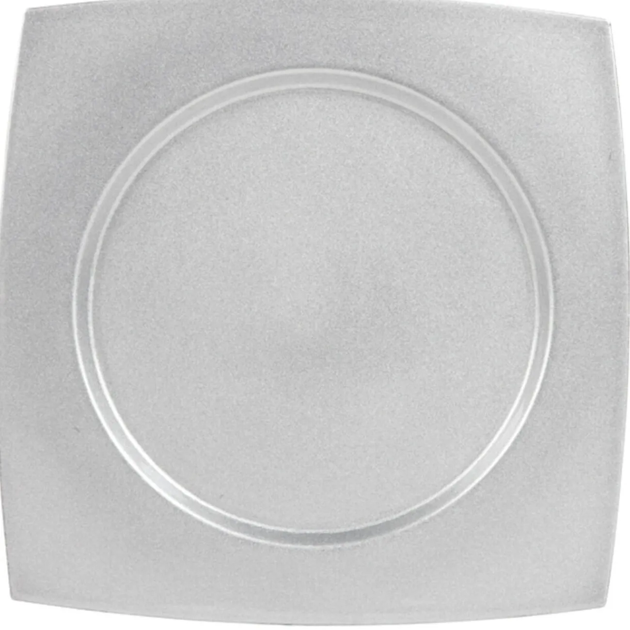 Assiette de présentation argentée, dim. 33×33 cm, plastique.