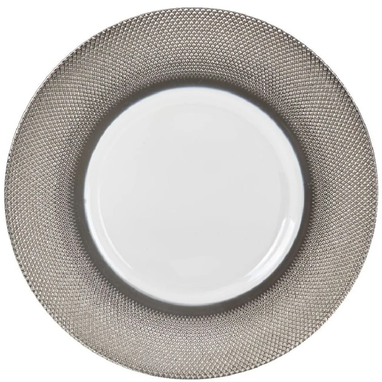 Assiette de présentation argentée effet diamant, pour apporter du peps à votre table de réception