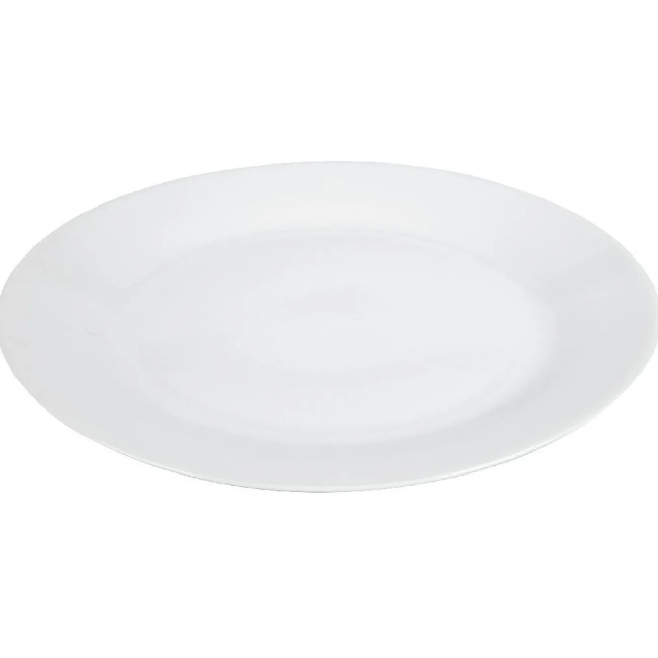 Assiette plate ronde en porcelaine, de couleur blanche.