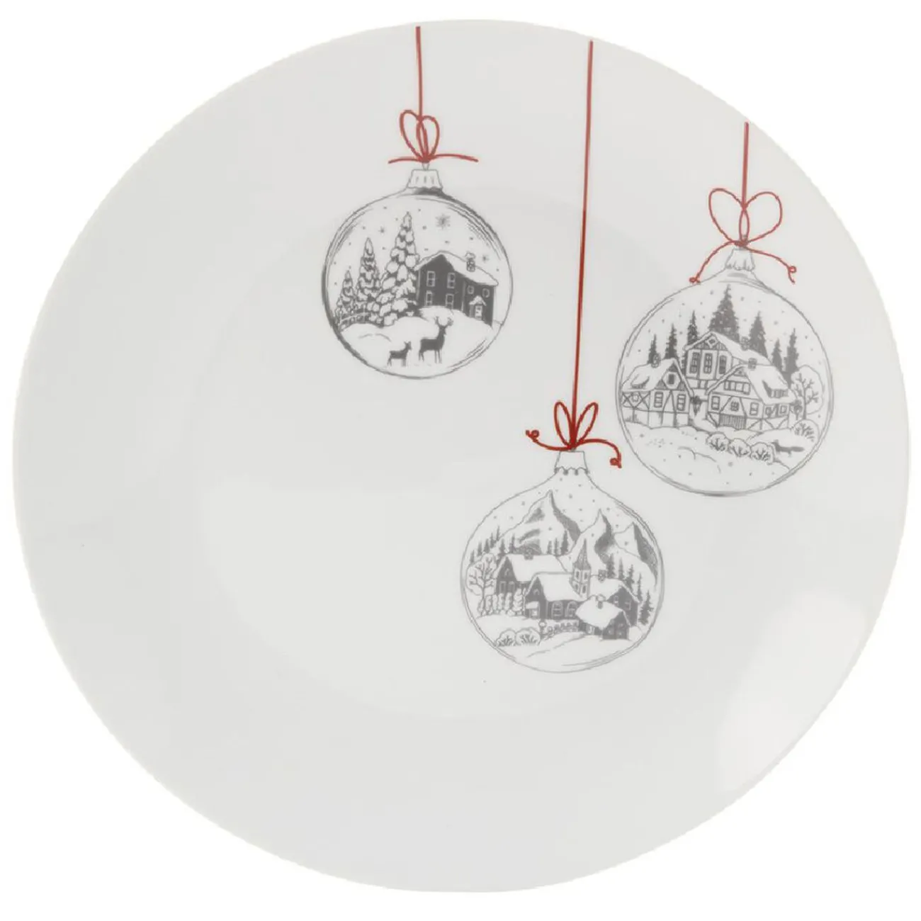 Cette assiette ronde à motif boule de Noël apportera tout son charme à votre table de fête pour les repas de fin d’année.