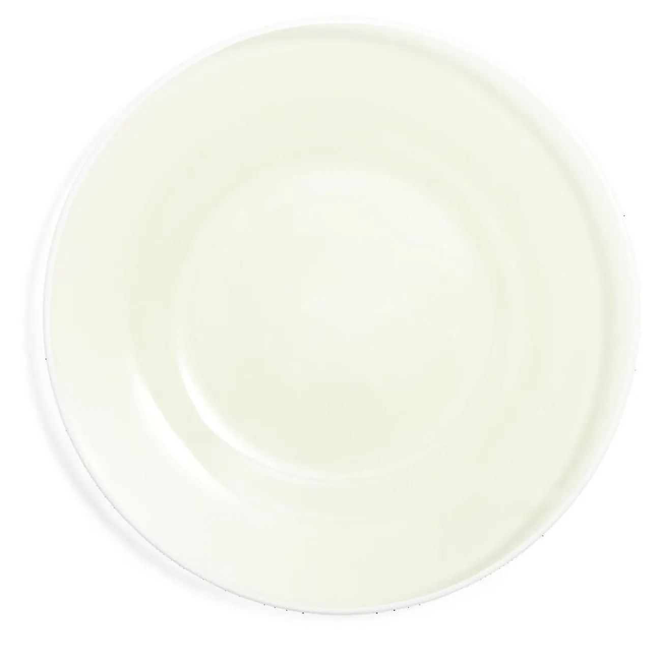 Laissez-vous séduire par cette assiette plate en verre transparent vert sauge, rehaussée d’un liseré blanc délicat sur tout le contour.