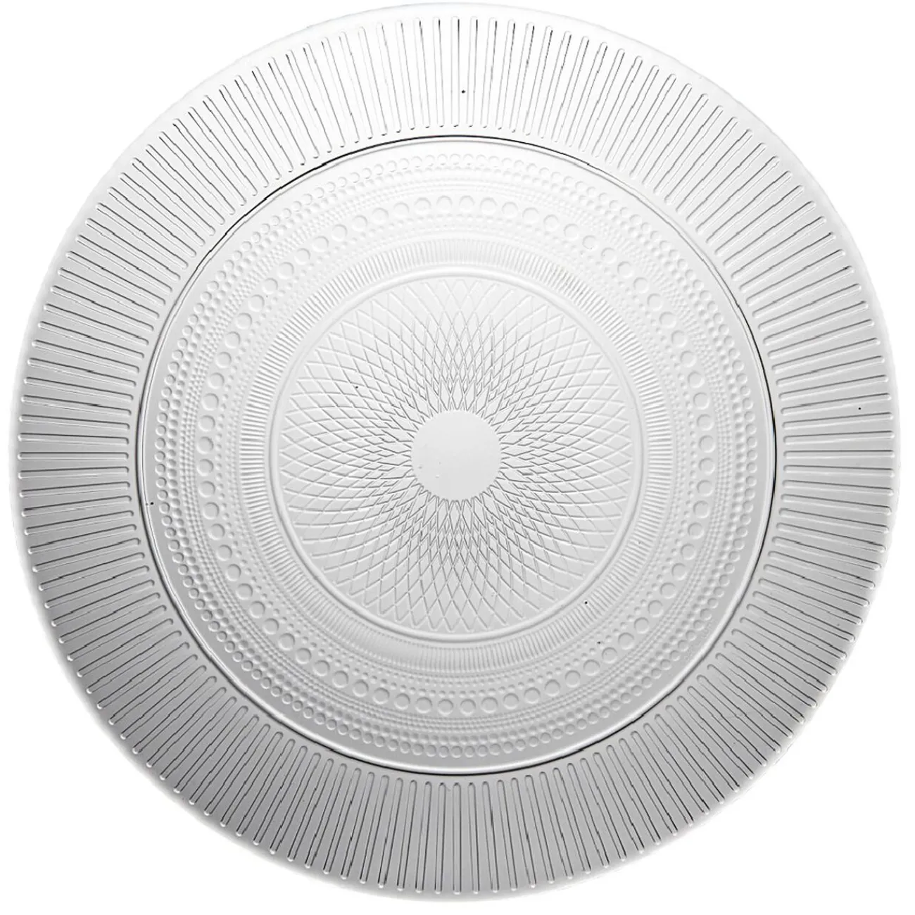 Jolie assiette plate de 25 cm de diamètre en verre transparent Louison de chez Luminarc. Son design raffiné et élégant apportera une belle touche de charme à vos repas.