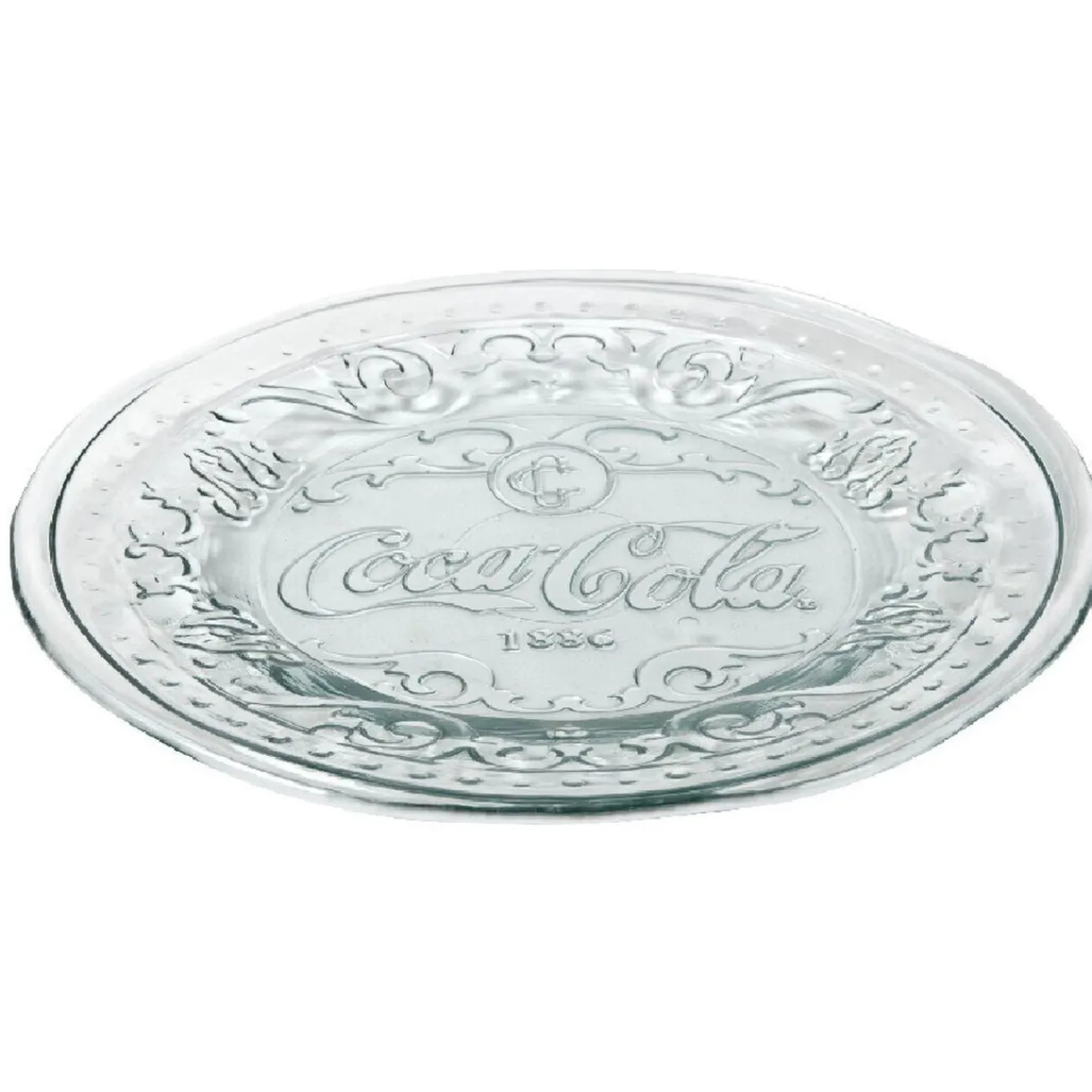 2 assiettes Coca-Cola transparentes, Ø 20 cm, verre recyclé.