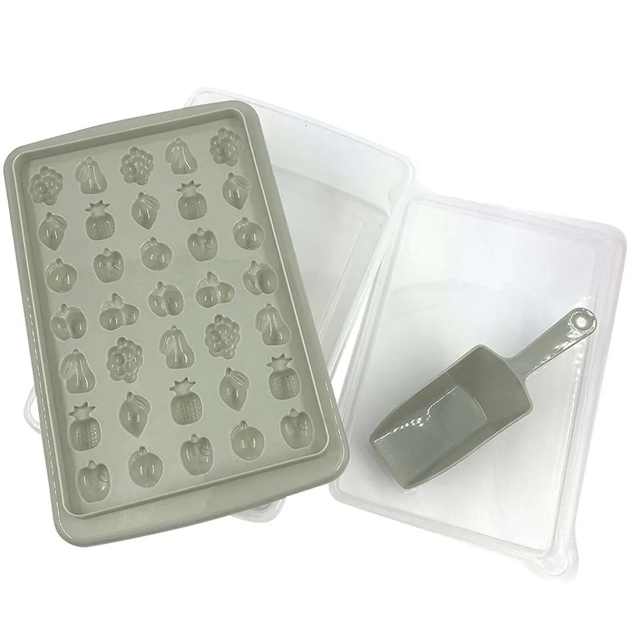 Faites des glaçons originaux en forme de fruits grâce à ce bac en plastique gris.