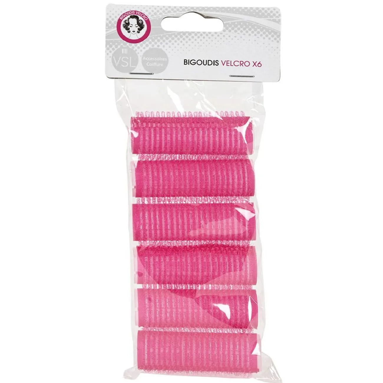 Lot de 6 bigoudis roses avec bandes autoadhésives