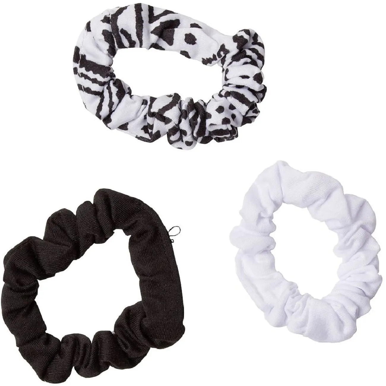 Lot de 3 chouchous en maille uni blanc, uni noir et imprimé noir et blanc.