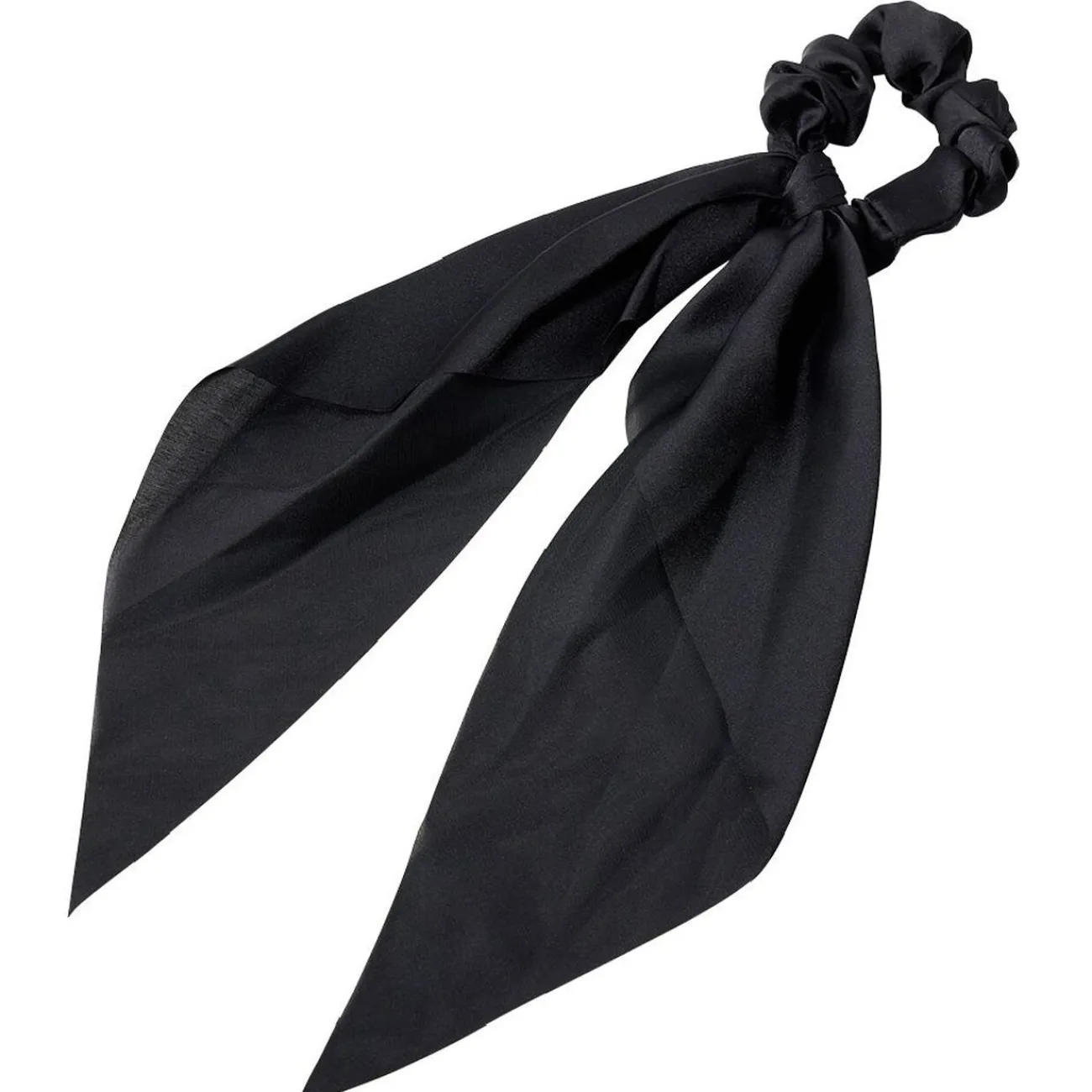 Chouchou avec long foulard noir rattaché, idéal pour mettre de la fantaisie dans votre coiffure !