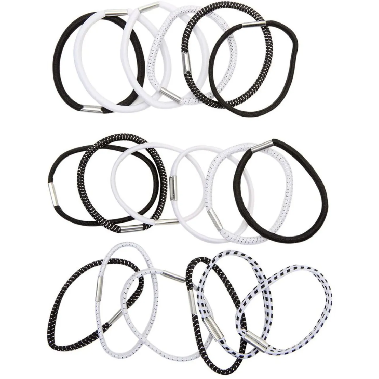 Lot de 8 élastiques en latex assortis blancs et noirs.