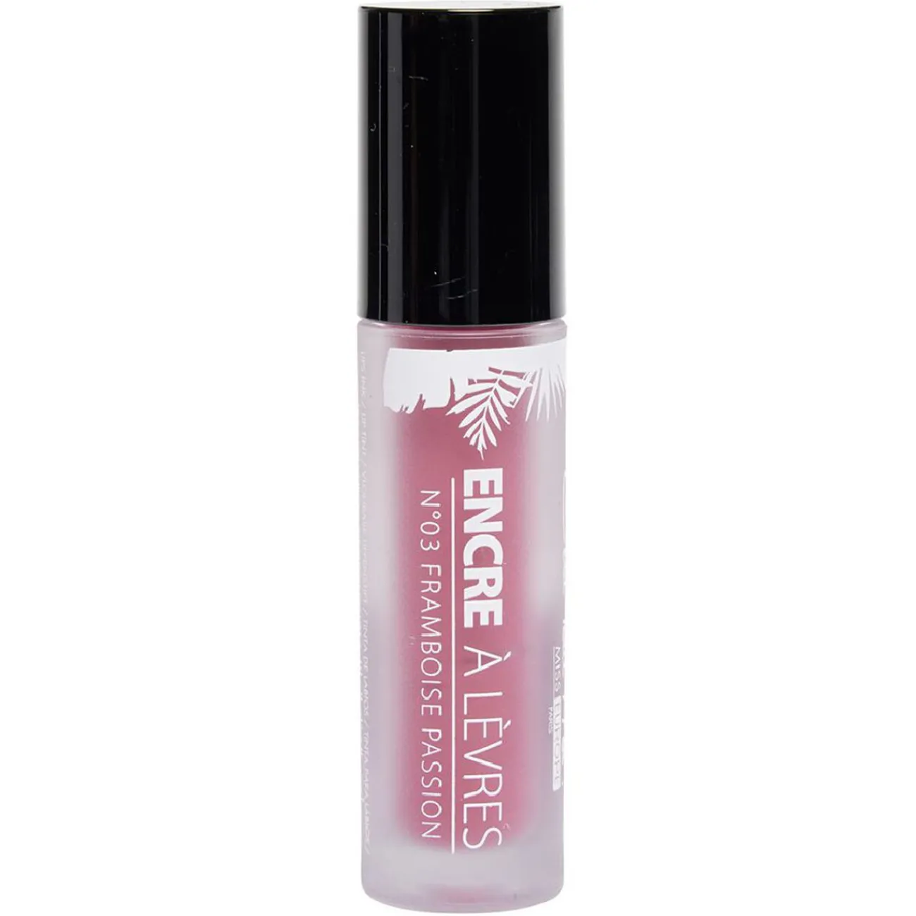 Encre à lèvres framboise, une couleur intense facile à appliquer et à transporter grâce à son petit format.