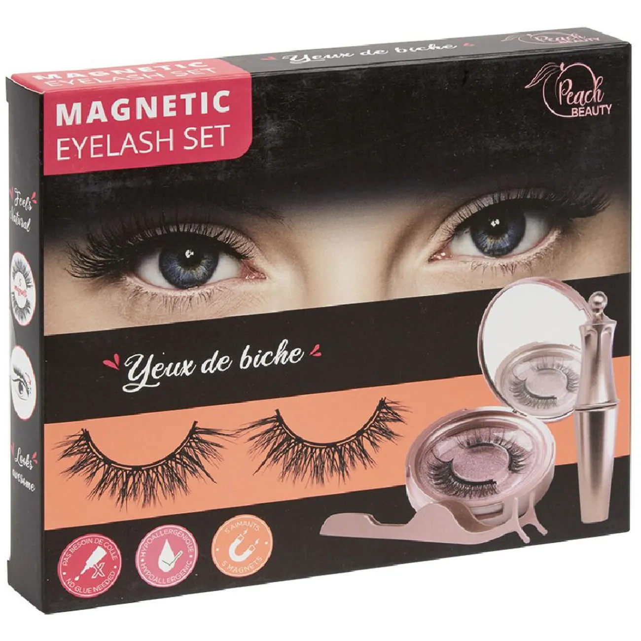 Faux cils avec 5 aimants, plus besoin de colle, la pose se fait simplement par magnétisme.