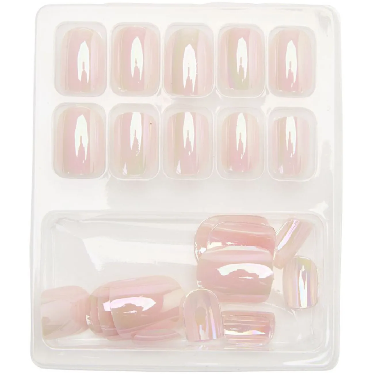 Kit de faux ongles en acrylique rose clair effet miroir.