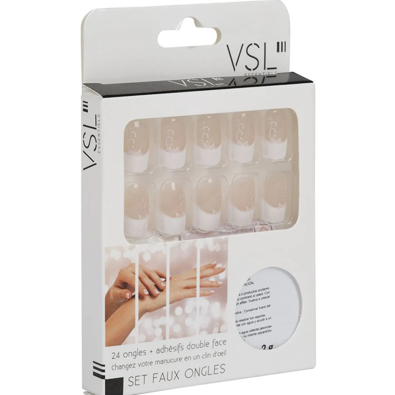 Kit de faux ongles à motif fleur. Lot de 24 pièces.