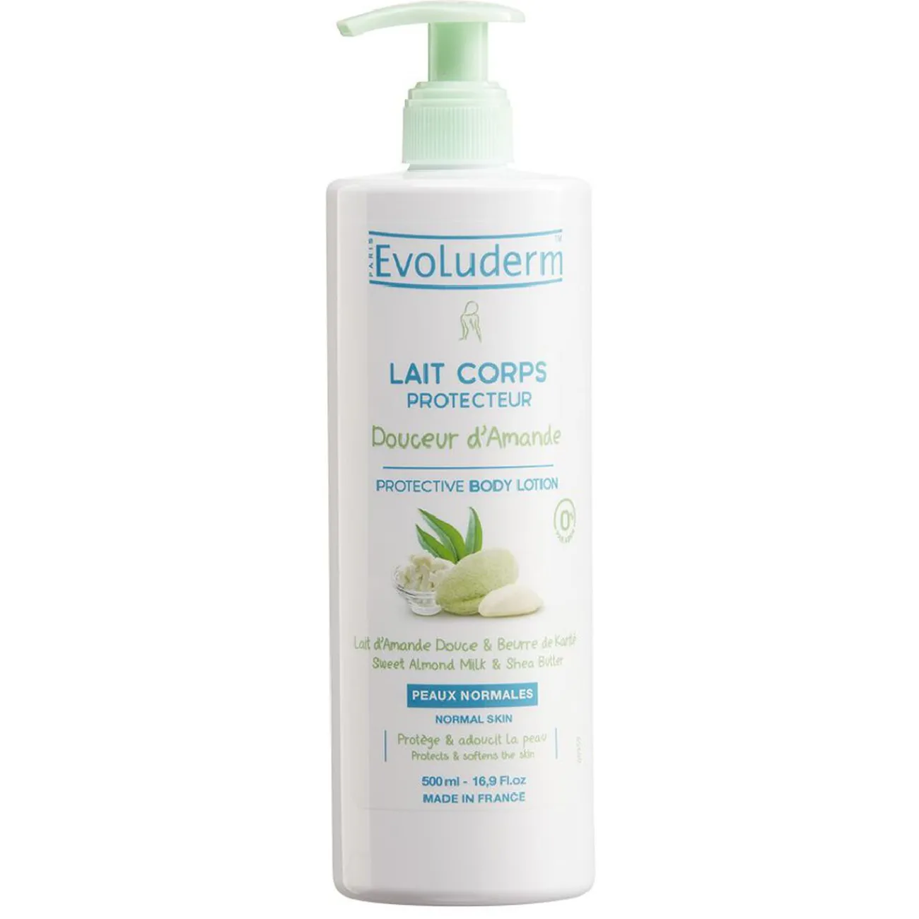 Lait hydratant Evoluderm pour le corps enrichi en lait d’amande douce et beurre de karité. Protège et assouplit la peau tout en l’enveloppant d’un délicat parfum.