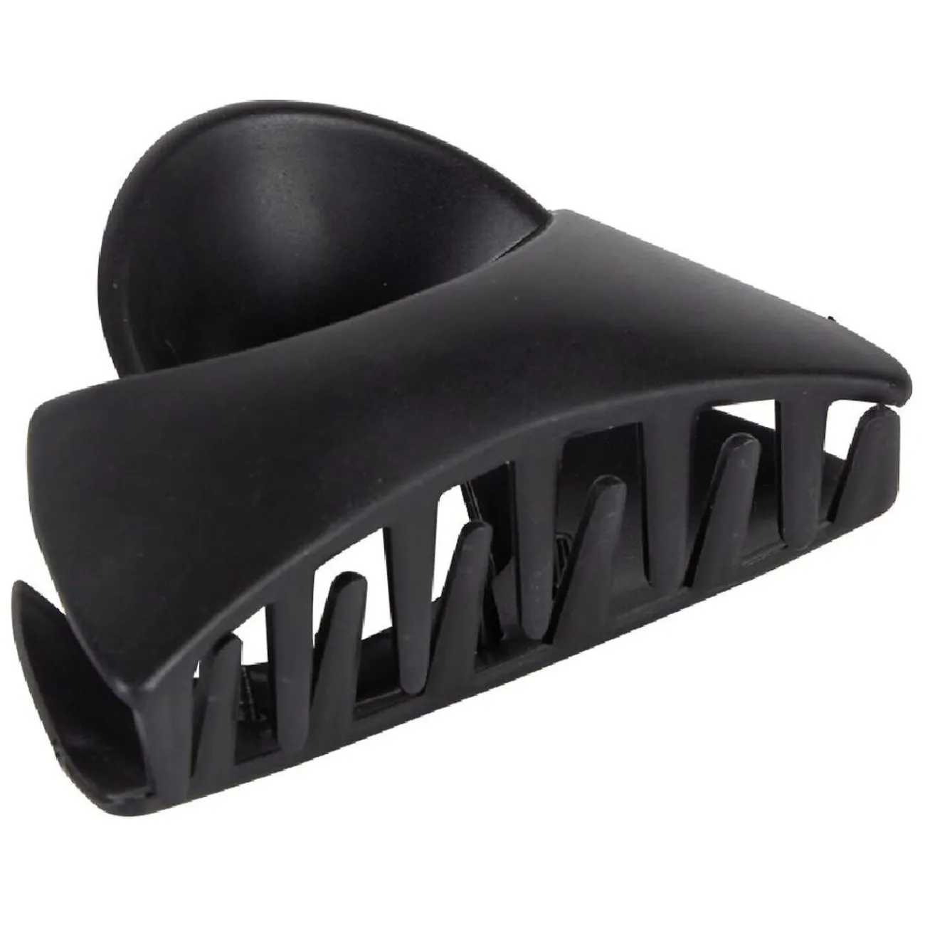 Pince à cheveux type crabe en plastique uni noir brillant.