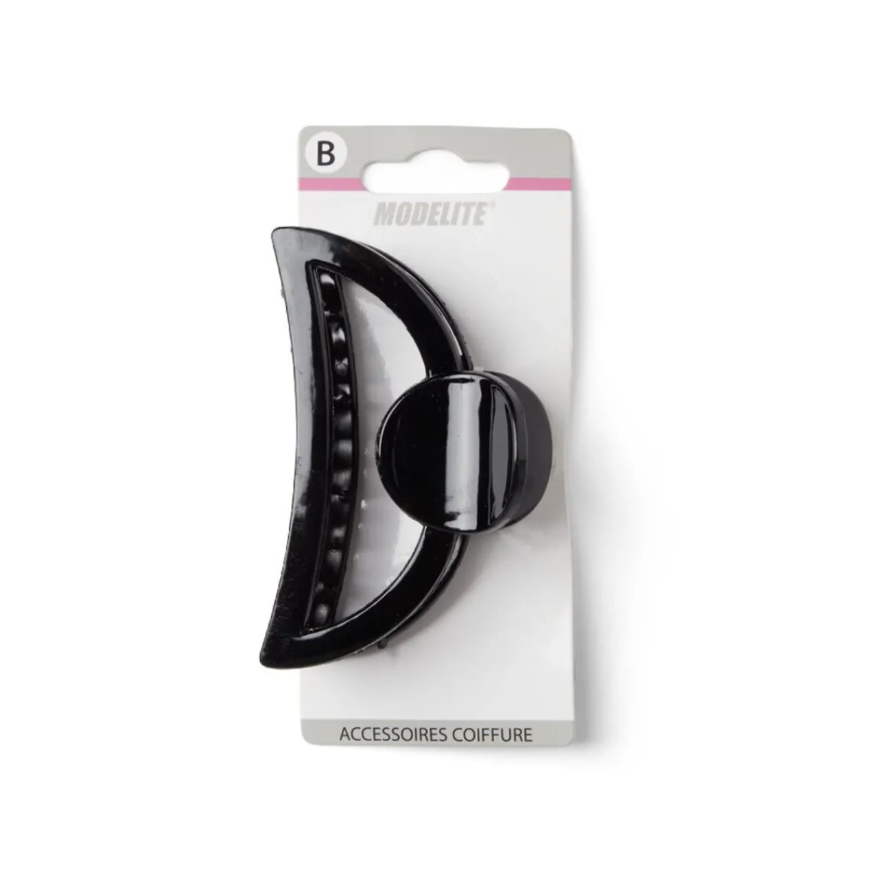 Cette pince à cheveux noire brillante avec centre ajouré est à la fois fonctionnelle et esthétique.