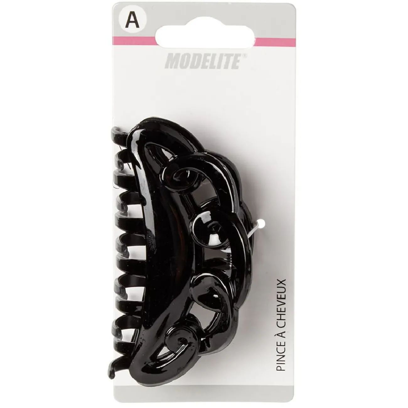 Pince crocodile en plastique uni noir brillant. Longueur : 9 cm