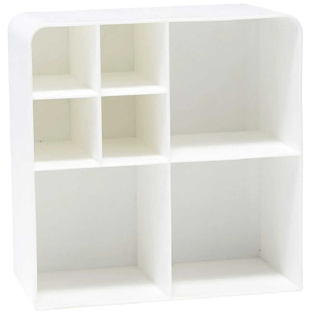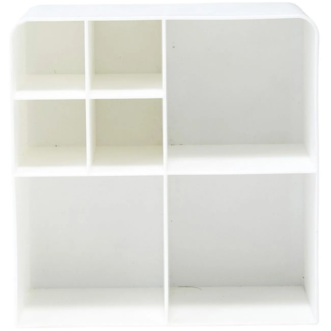 Organisez vos produits cosmétiques grâce à ce rangement en plastique blanc.