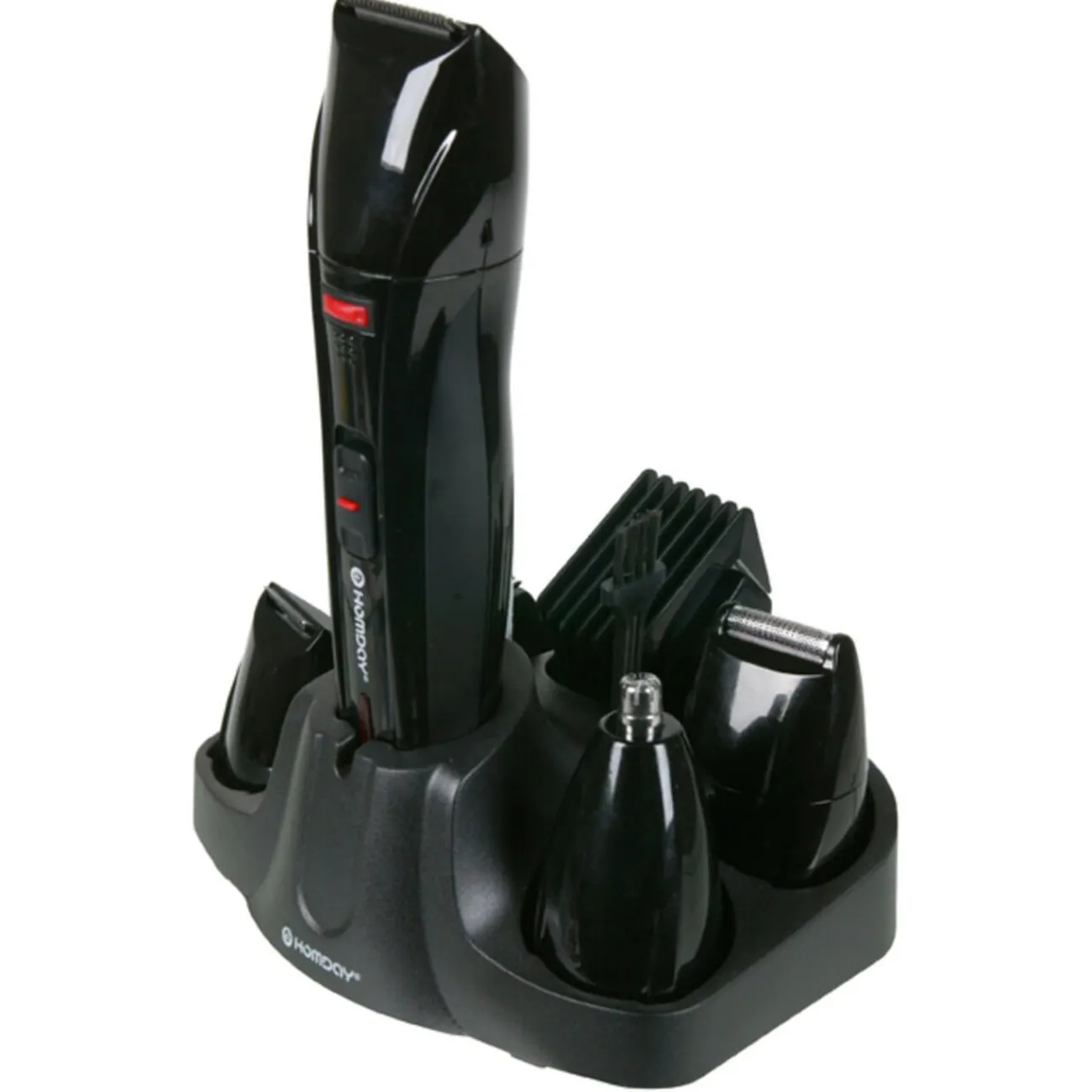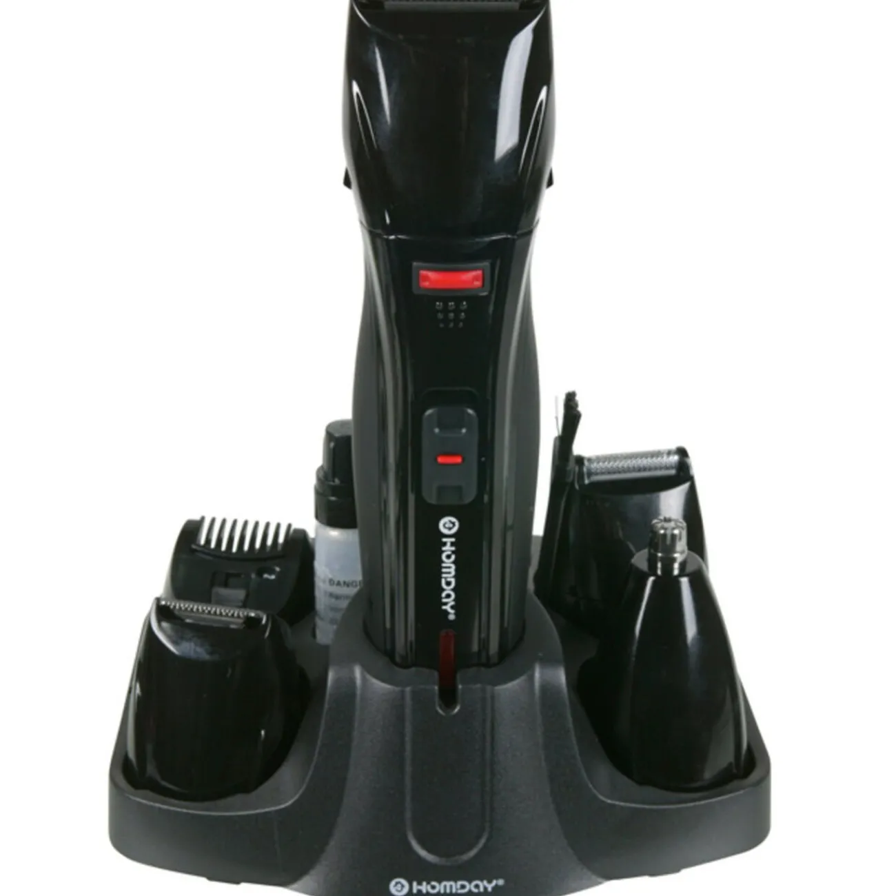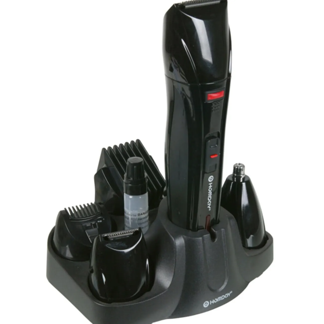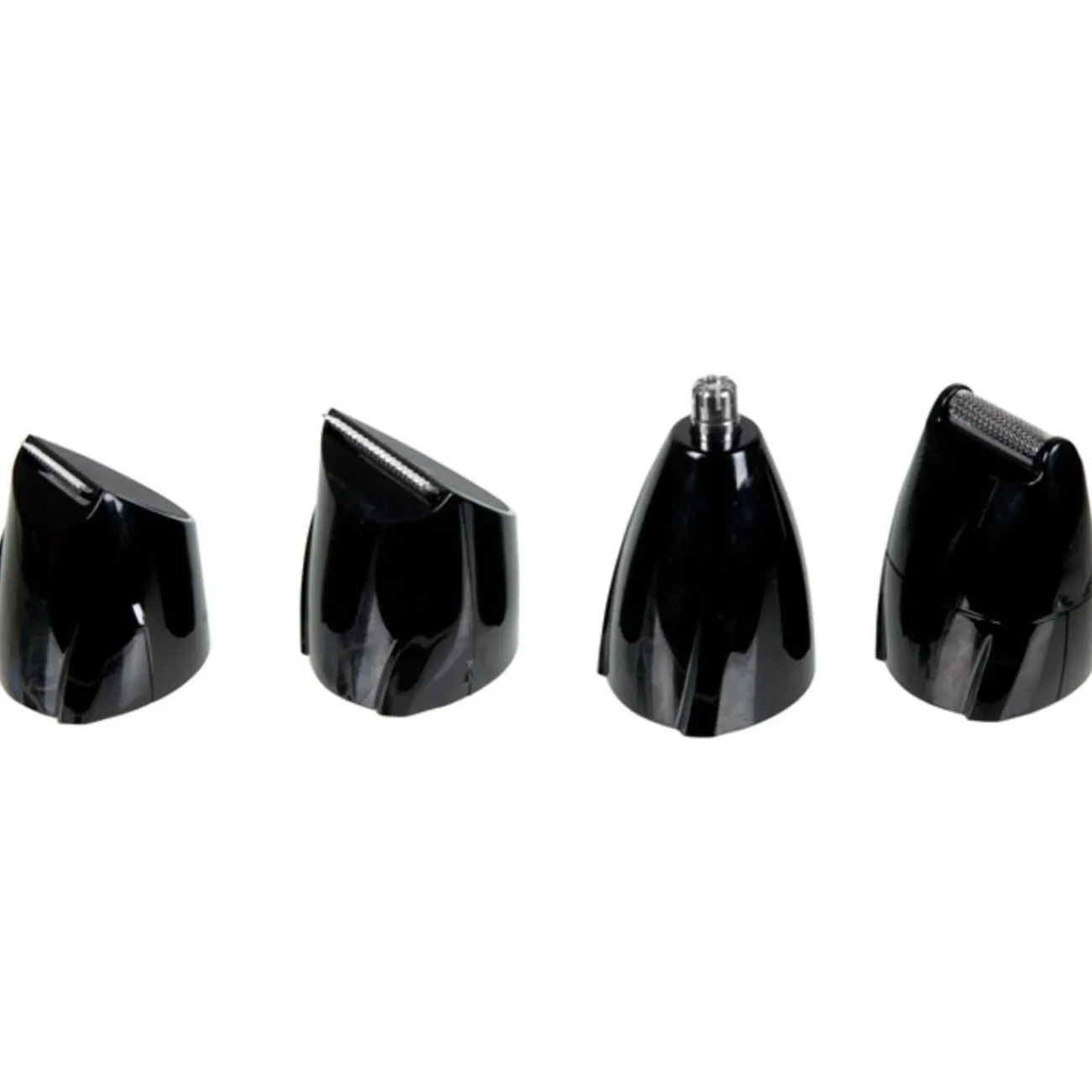 Rasoir électrique 6 en 1, L. 16 cm, tondeuse oreilles et nez, rasoir et 3 embouts de précision, indicateur lumineux de recharge, waterproof. Accessoires inclus : peigne, brosse de nettoyage, adaptateur de charge..