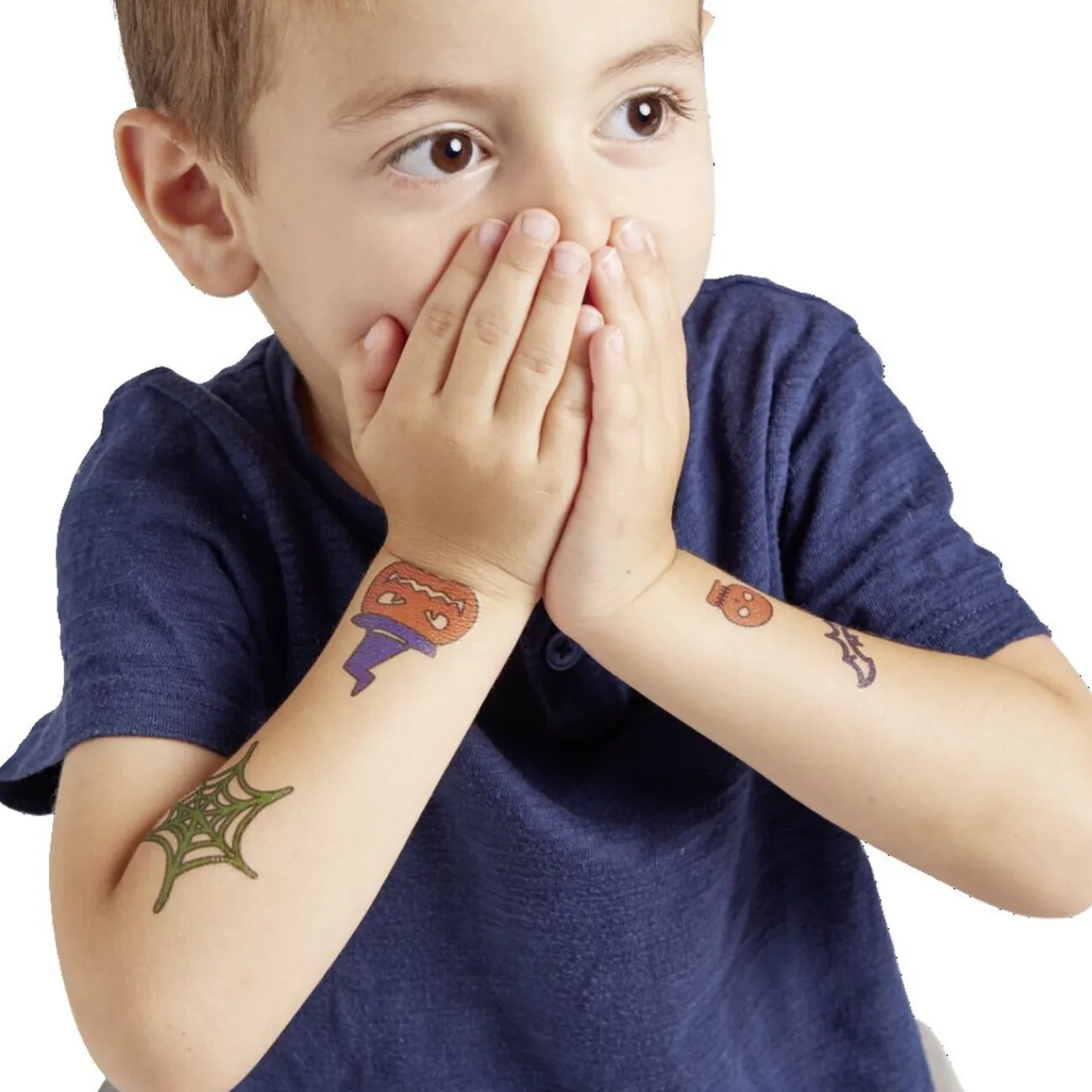 Assortiment de 14 tatouages éphèmères sur le thème de Halloween.
