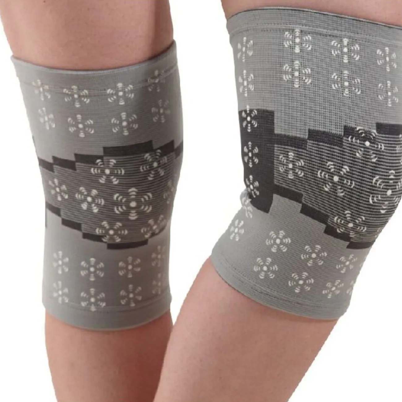 2 bandes chauffantes genoux, 65 % polyamide, 30 % latex, 5 % élasthane. La texture de ces fibres masse naturellement vos genoux et les relaxe.
