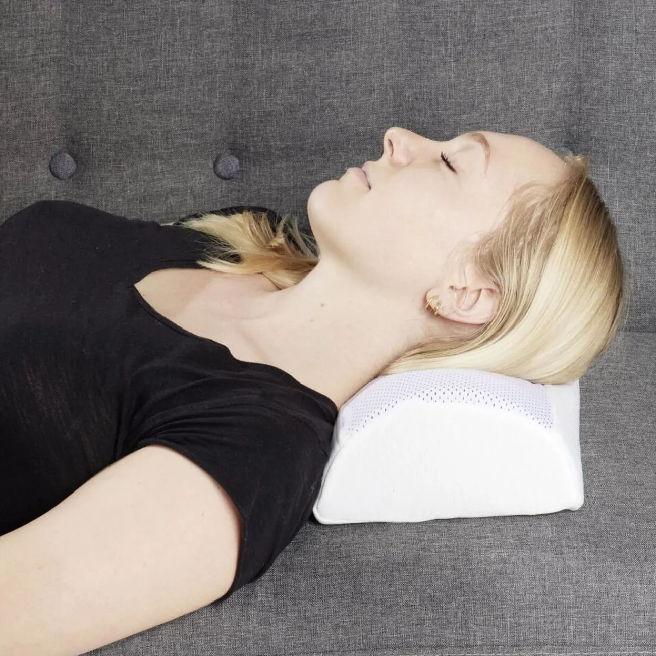 Ce coussin demi-rouleau à mémoire de forme est doté d’un gel rafraîchissant pour un confort optimal.